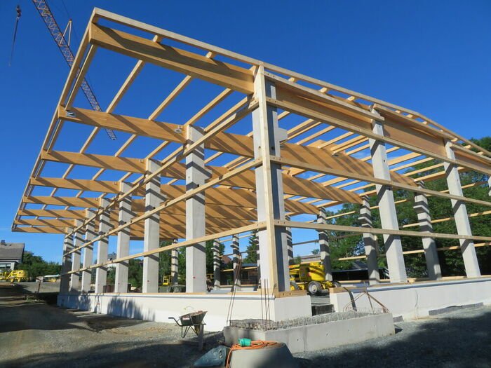 Wer eine Halle bauen möchte, ist mit Holz als konstruktiven und klimafreundlichen Baumaterial auf dem richtigen Weg.