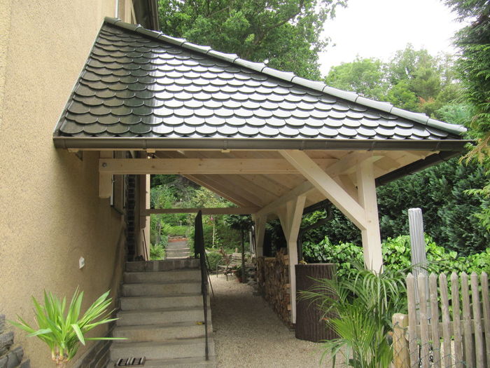 Für Ihren Eingangsbereich zimmern wir Ihnen sämtliche Dachkonstruktionen vom einfachen Sattel- oder Pultdach über Walm- und Krüppelwalmdach bis hin zu ausgefallenen Konstruktionen wie Zelt-oder Kuppeldächer. Unsere Leistungen beschränken sich nicht nur auf den Neubau, wir bieten Ihnen auch den Umbau und die Reparatur Ihres Vordachs.